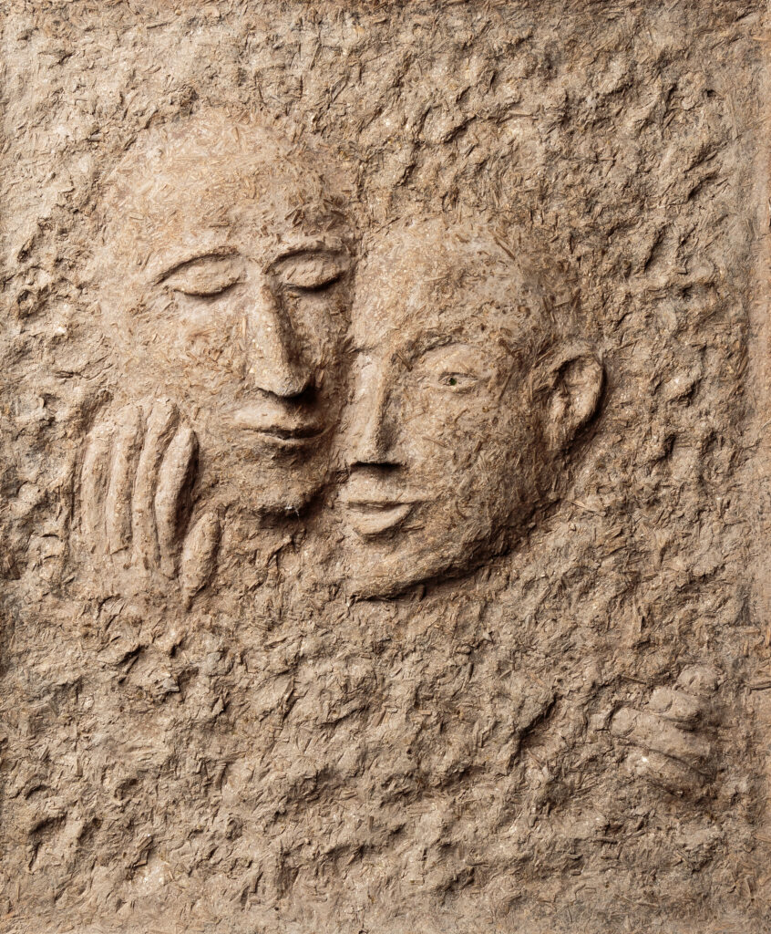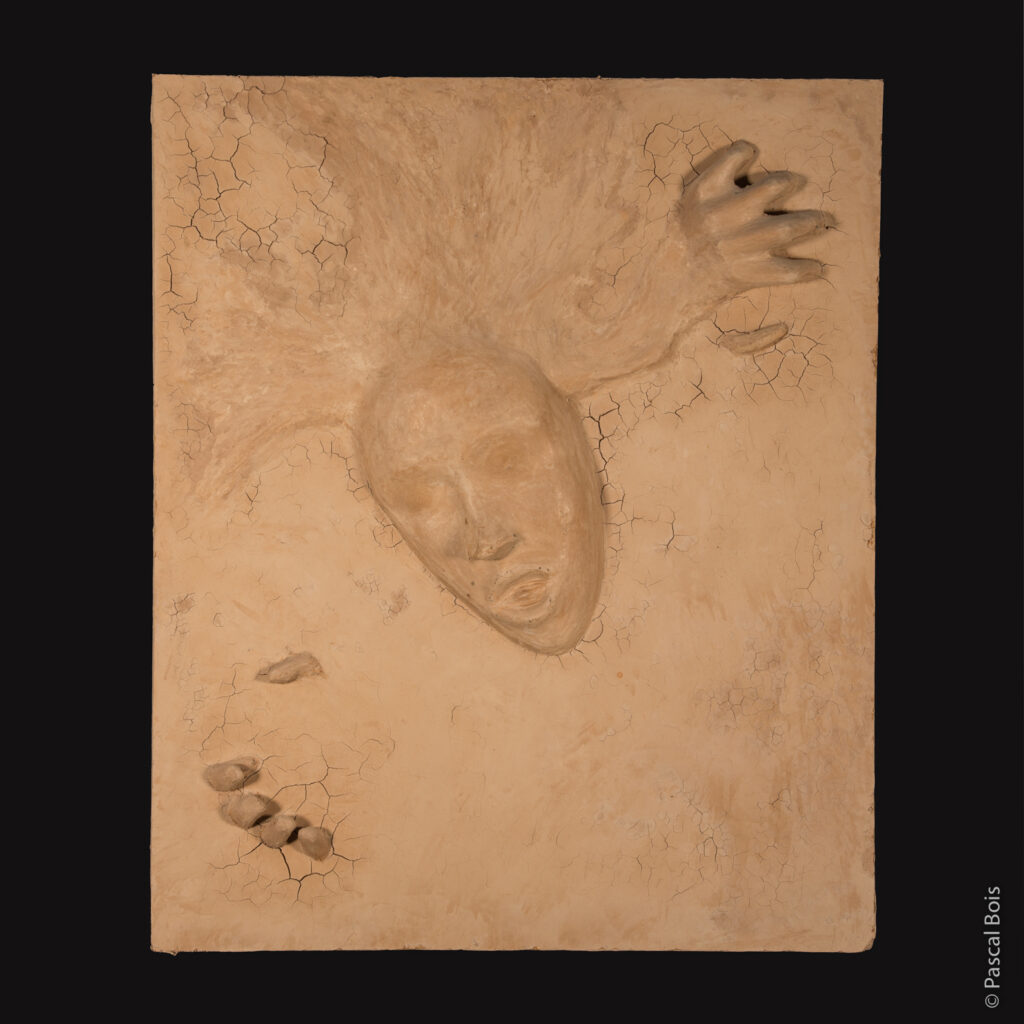 Modeler des visages c’est ce qui est venu en premier, ce ne sont pas des portraits mais juste des visages naissant de mes mains, émergeant du néant. Mon idée était de les faire « sortir de terre » mais en fait assez vite, c’est l’inverse qui s’est produit comme si la terre les avalait.